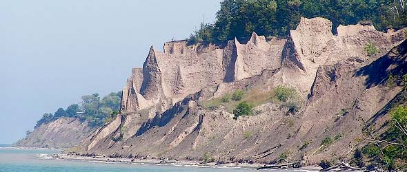 Chimney Bluffs is a natural wonder and popular with hikers. There are a few small historic buildings here, including the Dayton Mills Schoolhouse, the Huron Grange and Old Town Hall.